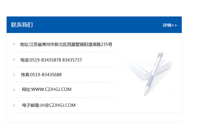 地址:常州市新北區友邦商務大廈1幢16、17層  電話:0519-85101652  傳真:0519-85112595  郵編:213022  網址:www.cz-jiayue_cn.renbenjinshu.com  郵箱:xiajifengaa@163.com